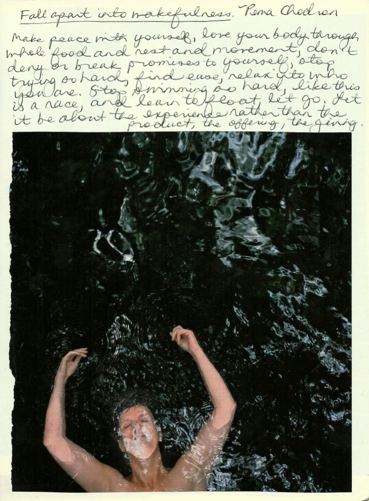 I need to learn to float, to lean back, stretch out my arms, relax my legs, sink until the water catches and holds me, my ears just under the surface where it’s quiet, my eyes looking towards the sky, my breath even.