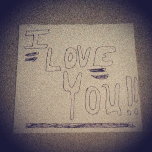 lovenote02Susannah suggested in today’s prompt that we take a picture of our own handwriting. However when I think of handwriting, I first think of Eric’s, specifically how illegible it can be, how hard it is to decipher a grocery list he’s written. The very next thing I think of in terms of his handwriting though is the love notes he leaves me. I have a box full of them, keep every one. And just in case you think I’m exaggerating, he didn’t know I was posting about this today, and this is the note that was waiting for me on the kitchen counter when I got back from walking the dogs this morning.
