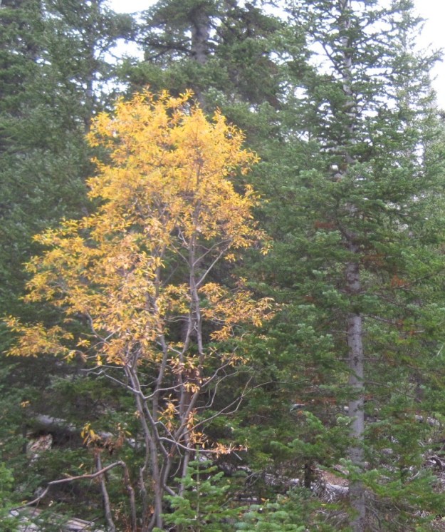 On the trail itself, there wasn’t much color, at least not the gold I was hoping for. In fact I only really saw this one tree, and it wasn’t even an aspen.