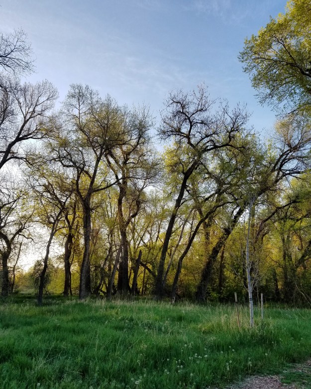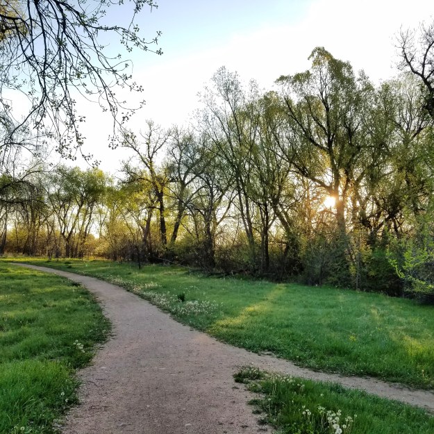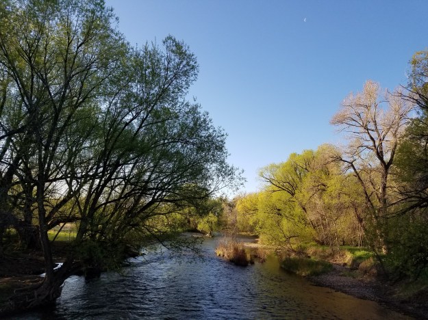 1. Spring. Besides the green and the blooms, you can tell it’s spring in Fort Collins because the river is full up of snow melt.