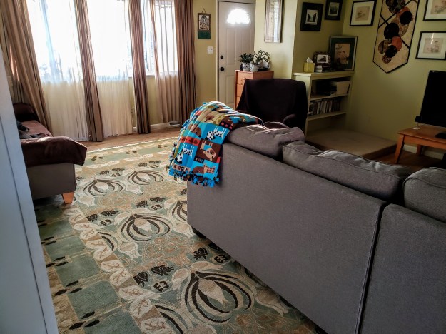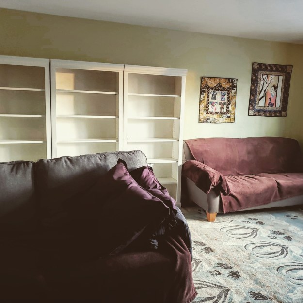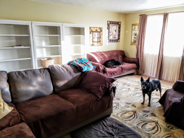 4. We got new furniture! You might not understand what a big deal this is. We’ve never had furniture that was new and matched or was any kind of intentional design. We still live like we are college roommates renting an apartment rather than a 26 year married pair of 52 year old home owners. We bought new rugs (so Sam won’t slip on the hardwoods and if he lies on the floor, he’ll be on something softer), a mini sectional, and new bookshelves this week. We are also going to get a console table to put our TV on. I hadn’t realized until we got it all set up how much I needed a fresh start, how much I’d appreciate the comfort and beauty. Of course, we ultimately ended up keeping one of our old sofas and a “vintage” mustard yellow velour recliner we inherited from Eric’s parents (they bought it new probably over 50 years ago) that Ringo loves, but it all works in the way we need it to work. Now if we can just keep Ringo from doing too much Parkour on and off the new couch. And also, WHY so MANY pillows?! Who uses all those?