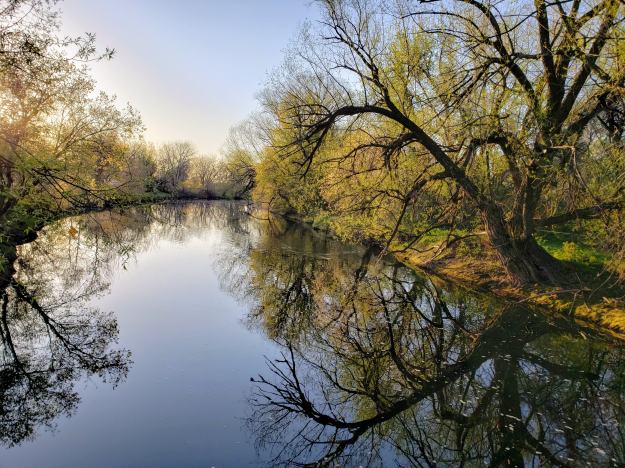 It’s hard to see, but the ripple in the water on the right is a beaver