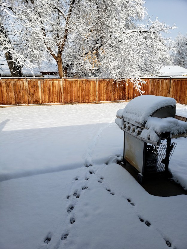1. Snow. We got about five inches overnight. The sun is out today and it’s already melting. Last year on this day, we woke up to nine inches — and this is why when you live here, you don’t plant anything in your garden or get your snow tires taken off until after May 15th.