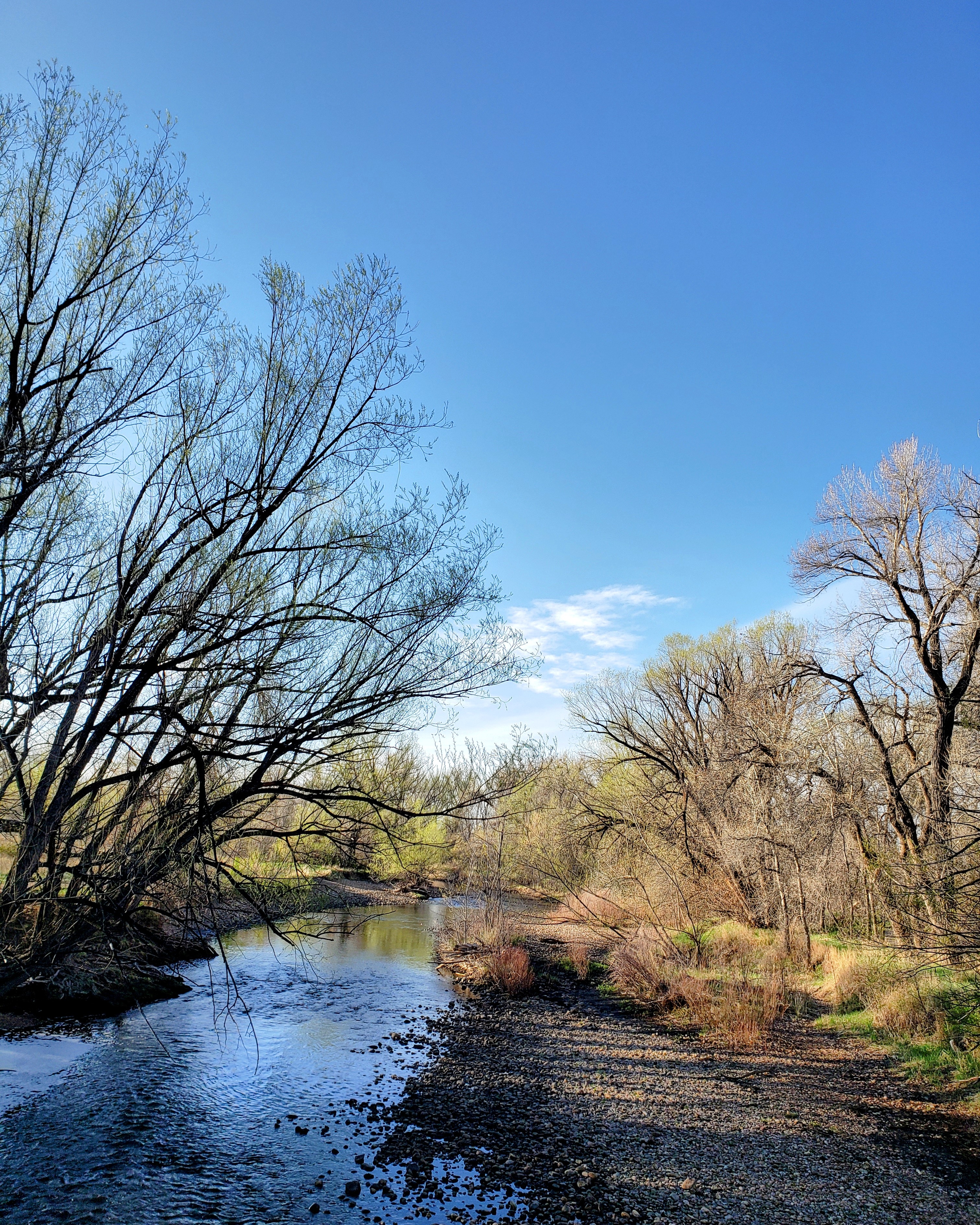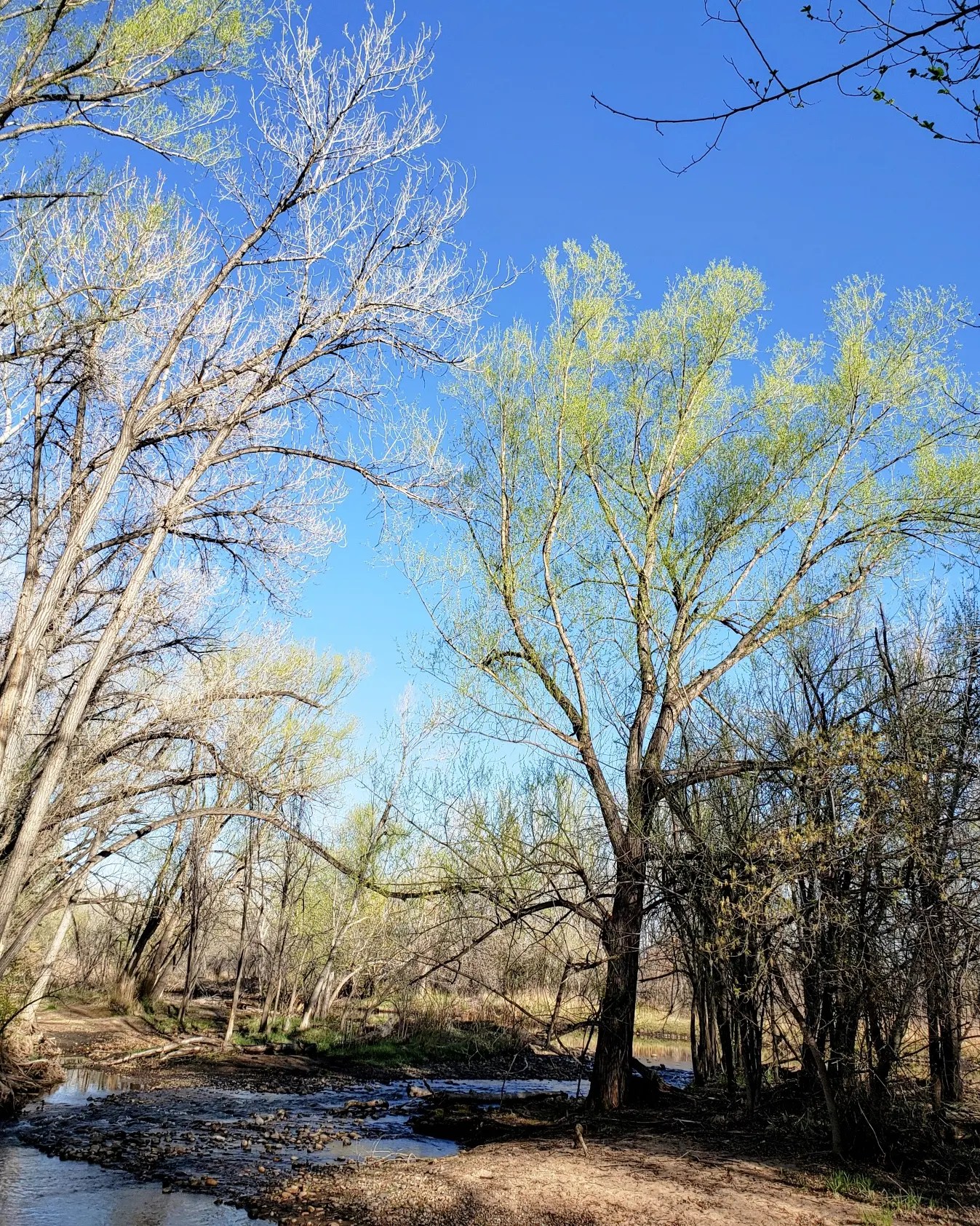 5. Morning walks. It’s spring, so that means we had some rain this week, had to stay close to home and even cut a few walks short because of it. The few times we got to walk by the river and ponds, there were things in bloom and five pelicans in a spot we’d never seen them before along with a few cormorants high up in some trees drying off their wings, (cormorants lack the waterproofing oils that other water birds produce so when they get out of the water, they need to dry off in a way other water birds don’t).