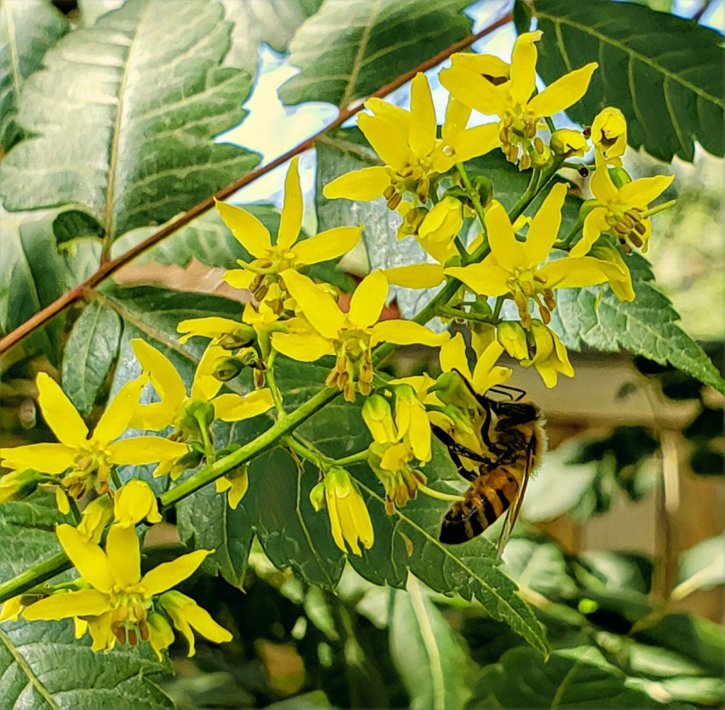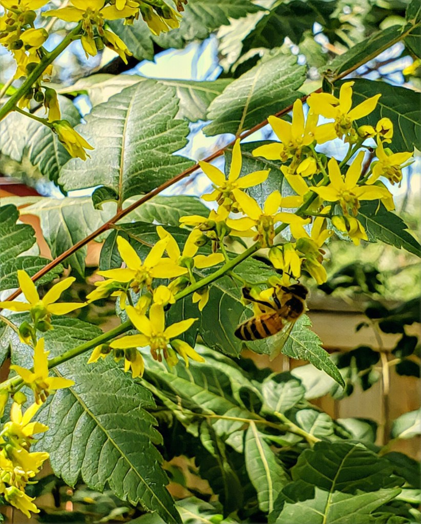 3. Honeybees, and how much they love our golden rain trees. At a particular time in the morning, there are so many, the hum of them collecting pollen from the tiny yellow flowers is the most gorgeous golden noise.