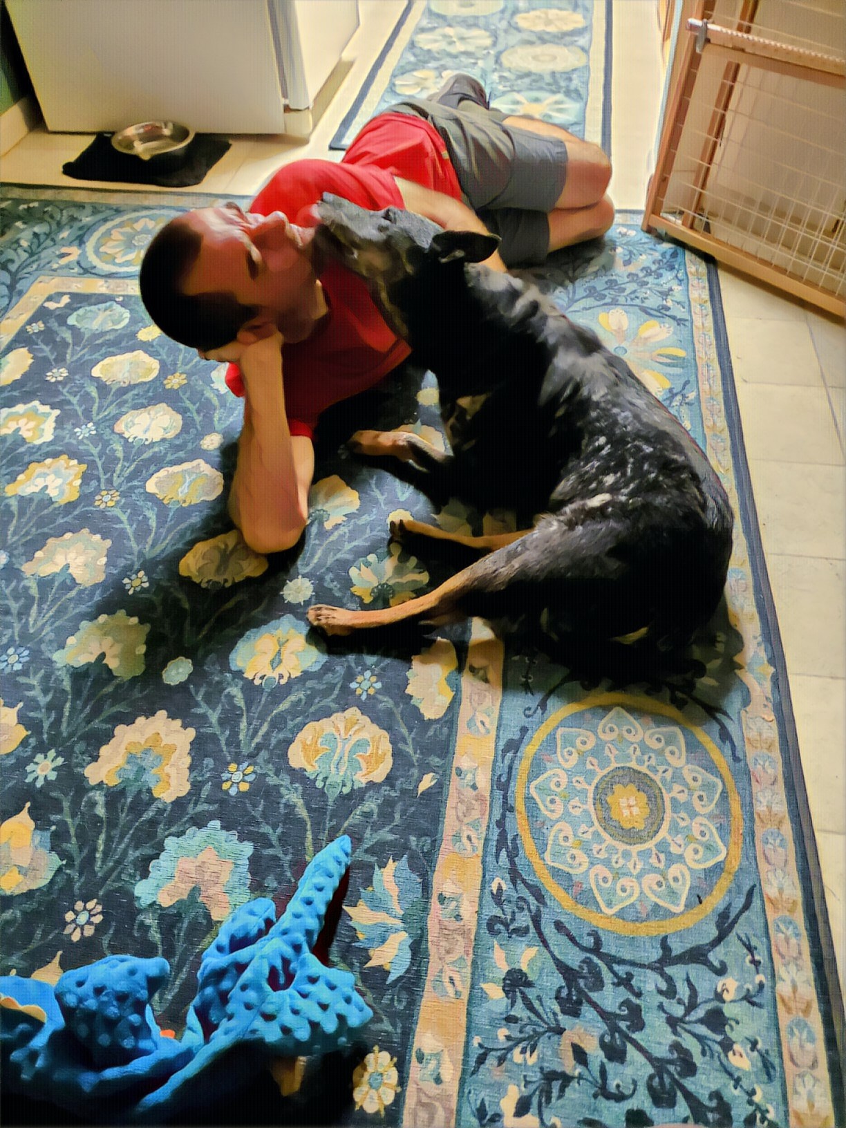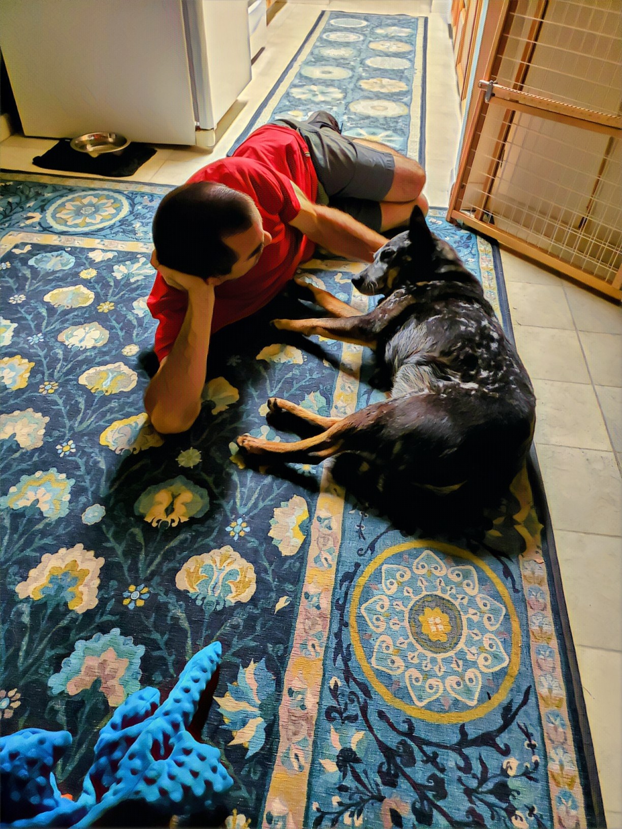 Bonus joy: Watermelon, peaches, grapes, corn, zucchini, tomatoes, basil, good books, listening to podcasts, watching TV with Eric at night, training with Shelby (who got engaged AND had a birthday this week), sharing more food with Chloe’ and Ralf, seeing Carrie’s addition almost finished, Ringo getting to meet Rex his new next door neighbor (the initial sniffing was fine, but then Ringo had to tell him “don’t mess with me” — Rex is a Goldendoodle easily twice Ringo’s size — so the meet and greet was cut short), the hydromassage chair, the pool, the sauna, going out to lunch with Eric, the full sized pig that apparently lives as a pet with a family down the street and around the corner that got out the other day and wandered down the block (when we drove by and the person was taking it back home, Eric rolled down the window and yelled, “I like your dog!”), yoga nidra, scheduling appointments online instead of having to call, vaccines and masks, my Friday morning Wild Writing sangha that starts back up soon, reading in bed at night while Ringo and Eric sleep.