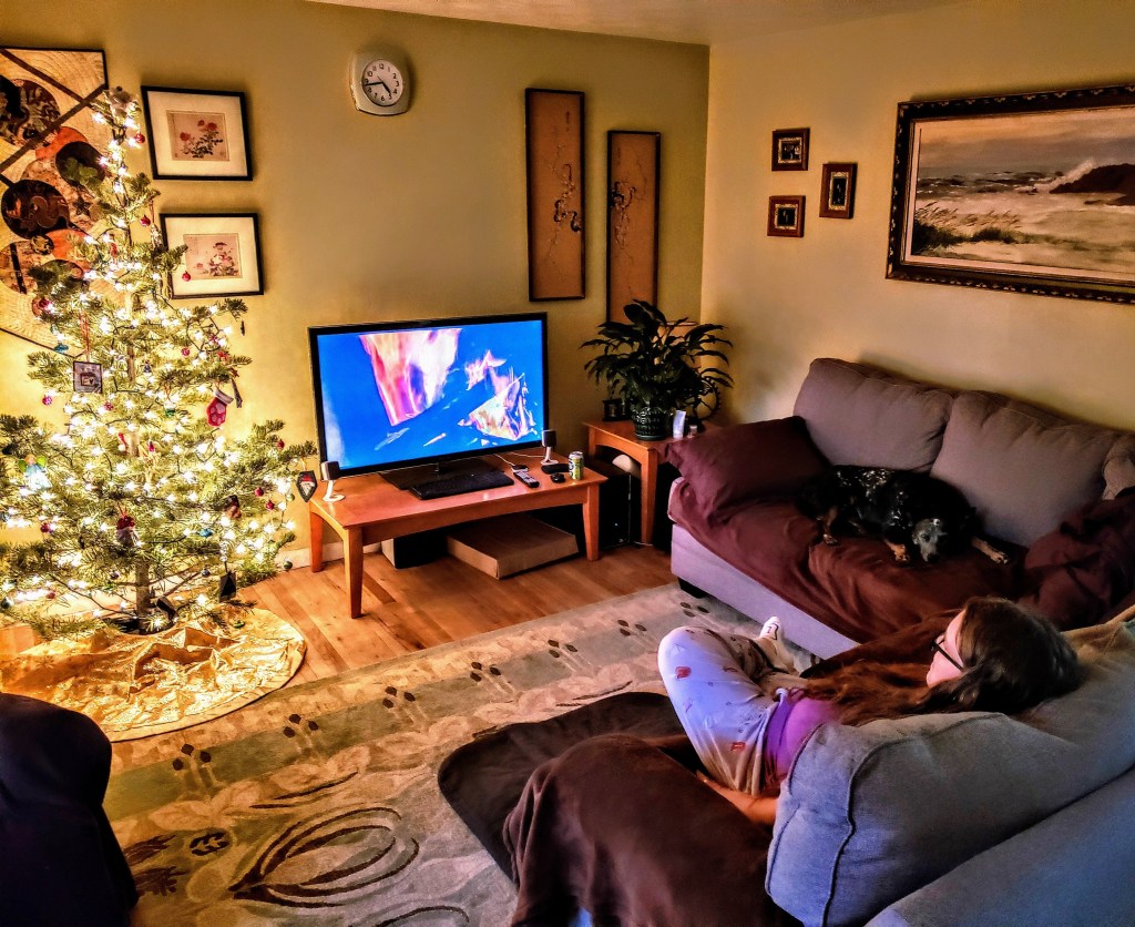 Bonus joy: music, listening to podcasts, my infrared heating pad, Wild Writing with Laurie and our “coven,” small group training with Shelby and the gang, the hydromassage chair, the pool, the sauna, my weighted blanket, the tiny computer/camera that I call a phone, an internet connection, true crime, down pillows and blankets, a warm shower, clean laundry, groceries, pay day, snow tires, electricity, clean water, heat, a white noise machine, chocolate, broccoli, roasted brussel sprouts, balsamic vinegar, walnuts, caramel, vaccines, painting, making art with Mikalina and Janice, texting with Chloe’, Mike Birbiglia, writing in the morning with a hot cup of coffee, sitting in the morning with a cup of green tea and my weighted blanket across my lap, hugs, laughing, naps, reading in bed at night while Ringo and Eric sleep.
