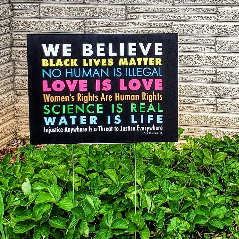I am so sorry you have to look out your window to hate. That sign on the left–that’s hateful. And to live with the cognitive dissonance it must create. I have been feeling a bit like I’m trapped in an episode of The Twilight Zone, where I can’t trust anything I see. And I want to resist that, because I know that’s what the authoritarians want. It’s what they need. I want to find ways to stay grounded in truth and connected to others who are. Thank you for being here, sharing yours.