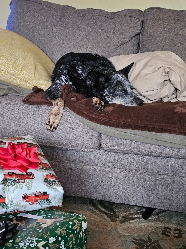 Bonus joy: pecan tarts, comedy, true crime, stickers, the family group text, clean laundry, pay day, how good it feels when someone likes what you got them for Christmas or their birthday, nuts, leftovers, soft bread, roasted vegetables, getting in the pool, sitting in the sauna with Eric, texting with Chloe’, sharing memes and reels with Shellie and Kari and Carrie, listening to podcasts, a new Kindle, libraries and librarians, poetry and poets, watching TV, eating candy, white cheddar popcorn, massage, blackout shades, my weighted blankets, Christmas cards, twinkle lights, down blankets and pillows, wool socks and sweaters and shirts, other people’s kids and dogs and Christmas decorations, having a tree with just lights, not losing hope or giving up, naps, reading in bed at night while Eric and Ringo sleep.