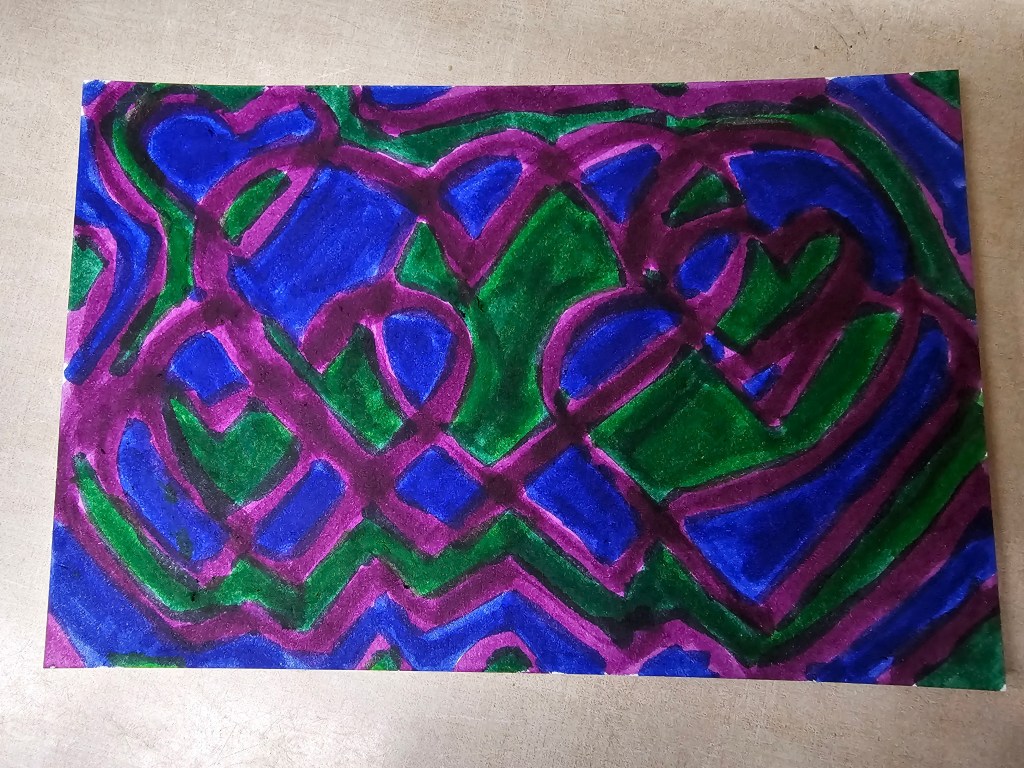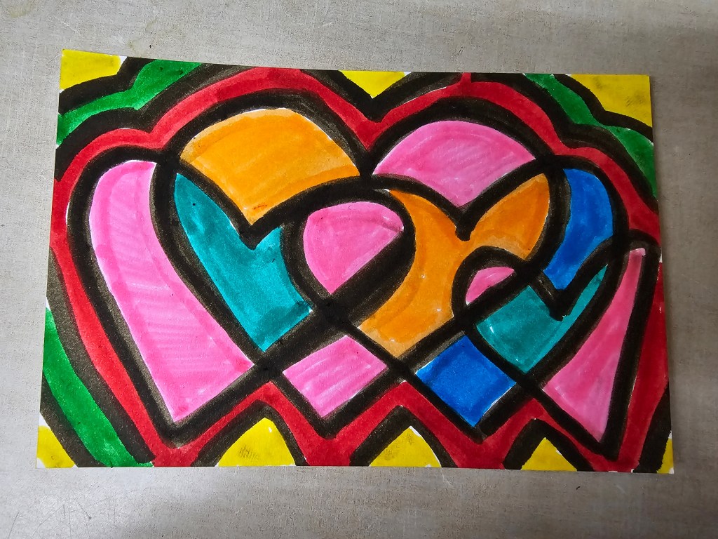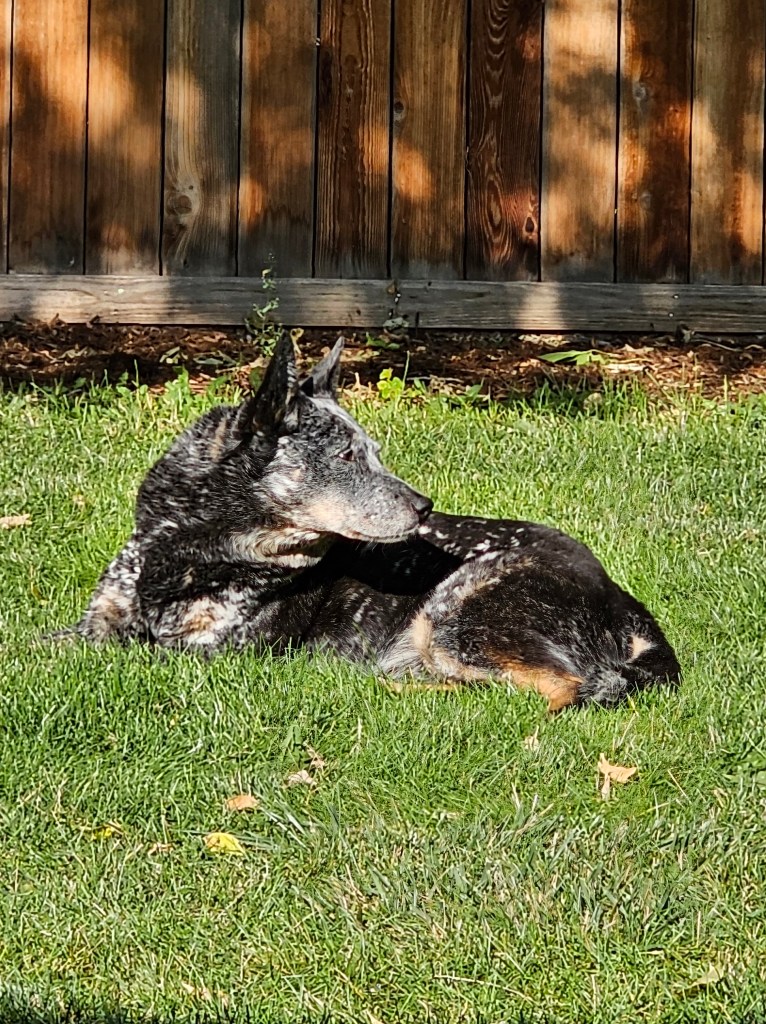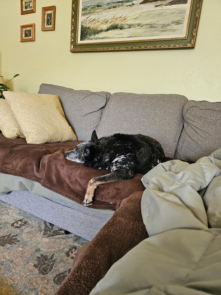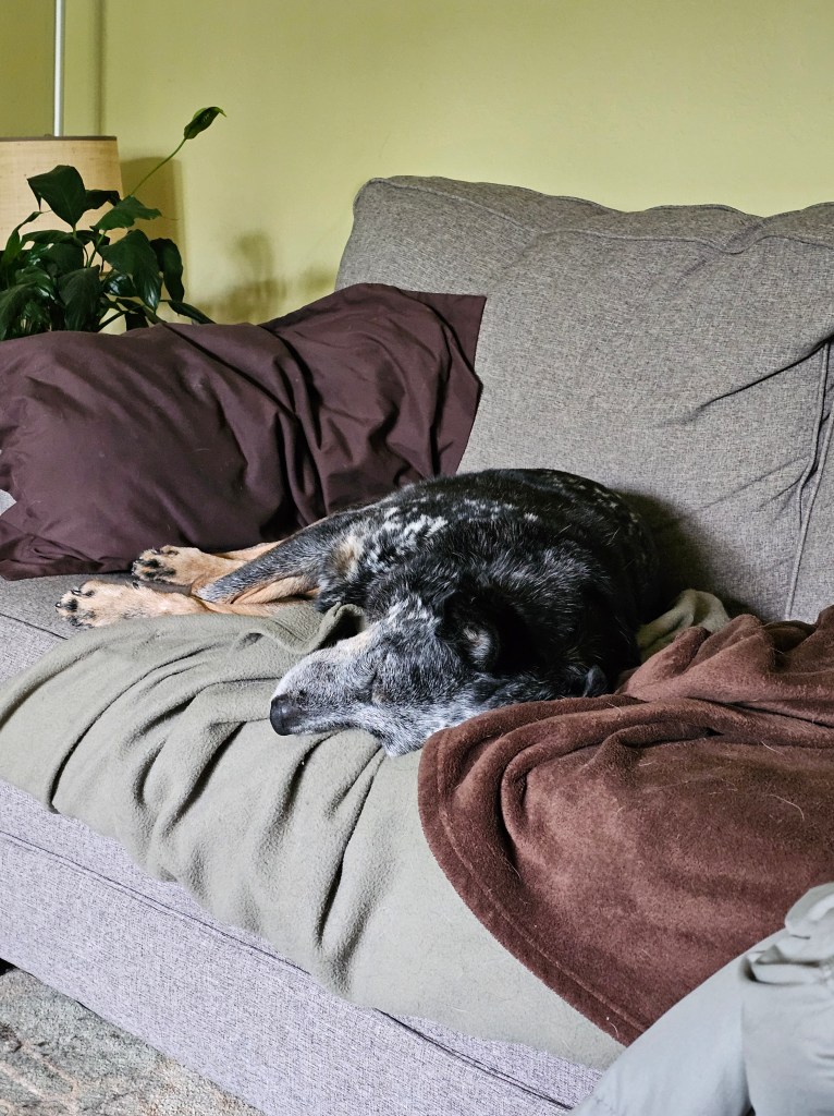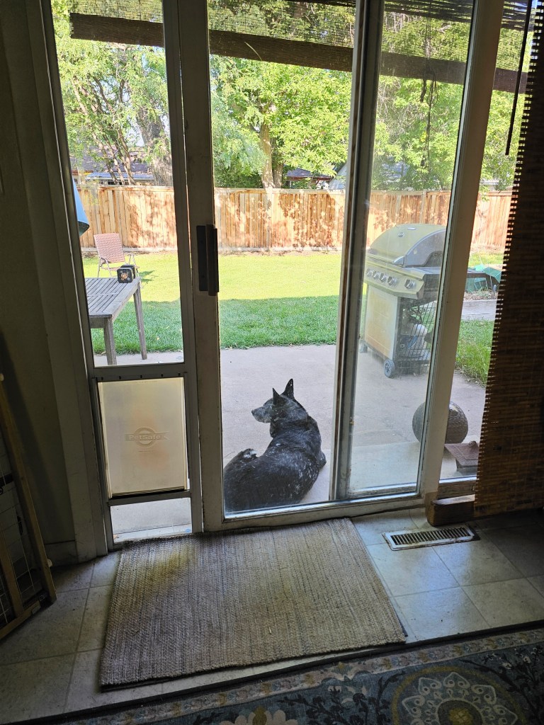 Bonus joy: sending another card to my mom (telling her about the weather and my boring days and how busy Eric is at work feels like the “before time” when we would email or text each other), crying when I feel sad, walking by Your Best Day Ever on Monday mornings to say “hi,” how it comforts Ringo when he’s at the vet to sit right next to me, how the tech who took him back to draw blood for some tests said when she came back that “I have never had a dog run so fast to get back to their person,” how something about being in the exam room with the low windows kept Ringo calmer while he was there and the little girl who came up to the window to say “hi” to him and how hard his tail wagged when she did, texting with Chloe’ and Chris, sharing memes and reels with Carrie and Kari and Shellie, my “Liked Songs” playlist on Spotify, good TV, tarot, making art, the spaghetti Eric made last night, plain bean and cheese burritos, Sunday morning Pilates, sitting in the backyard with Ringo, bees, naps, poets and poetry, comedy, true crime, listening to podcasts, libraries and librarians, other people’s dogs and kids and gardens, pie (it’s getting time for apple!), the last few Palisade peaches, roasted veggies, onion buns, a big glass of cold clean water, a warm shower, a big salad, book club, making each other laugh, reading in bed at night while Eric and Ringo sleep.
