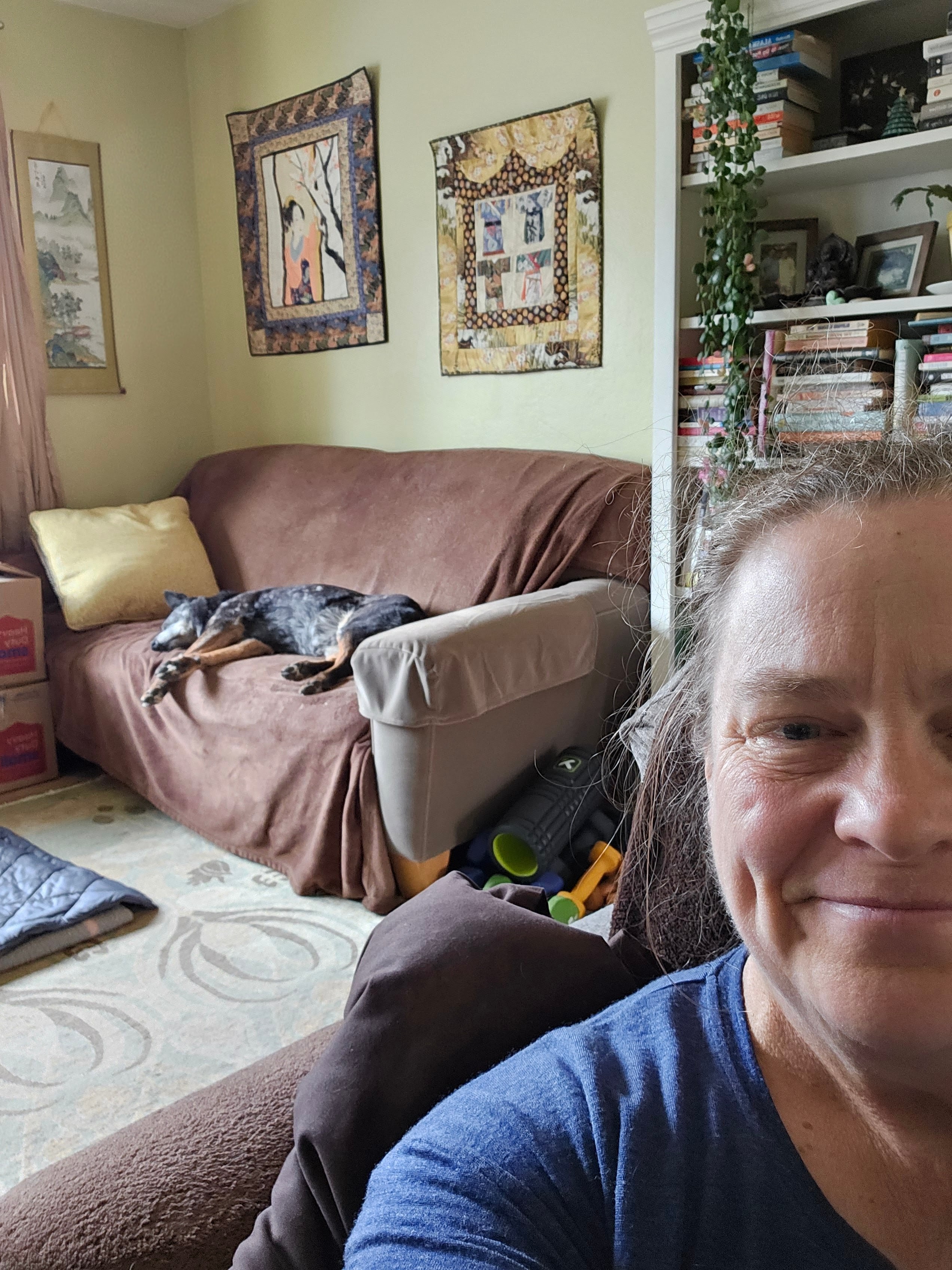 Bonus joy: chicken breast made in the air fryer by Eric, the yellow green new leaves on my neighbor’s Honey Locust tree, good mail, stickers, a new blank notebook, ink refills for my pen, a warm shower, a big glass of cold clean water, getting in the pool and sauna, my new aqua shoes, Haflinger wool slippers, texting with my brother, sitting in the backyard with Eric and Ringo, down blankets and pillows, compression socks, listening to podcasts, naps, reading in bed while Eric and Ringo sleep.