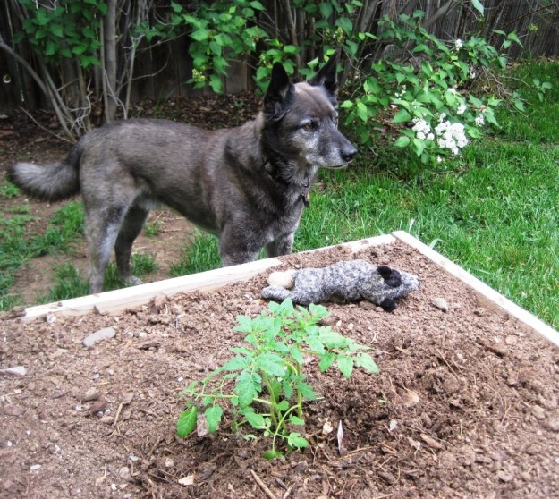 When Dexter was still here, he loved them so much he tried to pick his own but couldn’t tell if they were ripe and would leave a trail of squished green ones behind him. He was so happy when I would grab a container and say, “let’s go pick some tomatoes” because he knew he’d get some, and every one of them would be ripe. This is a picture of him his last summer, when we put in a tomato plant just for him. I told him he could have all the tomatoes off that plant all to himself, even though I knew he’d probably be gone before it got fruit, before they were ready to eat — and he was. Letting him go, missing him has been anything but smooth.