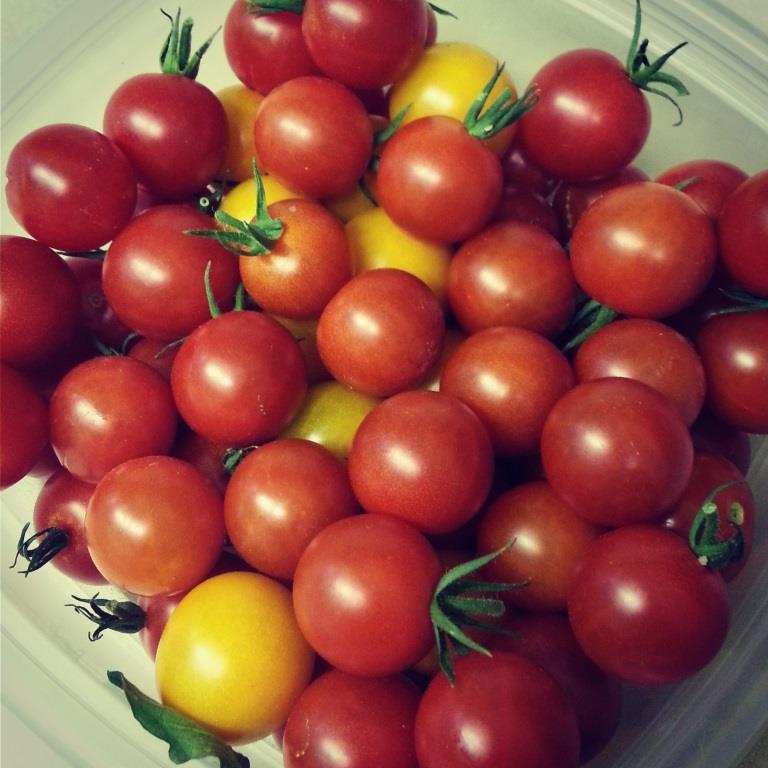 Smooth. Sweet 100s. Perfect little bites. The skin is tight so when you put one in your mouth you have to pop them open to release the sweet, careful to keep your mouth closed so it doesn’t spray everywhere. Sometimes when you pick them, if they are ripe and warm, they’ll split open as they come off the stem.