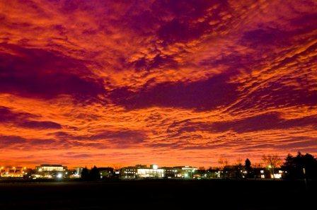 The clouds billow like smoke from the fire orange bottom. It looks like a volcano erupting.
