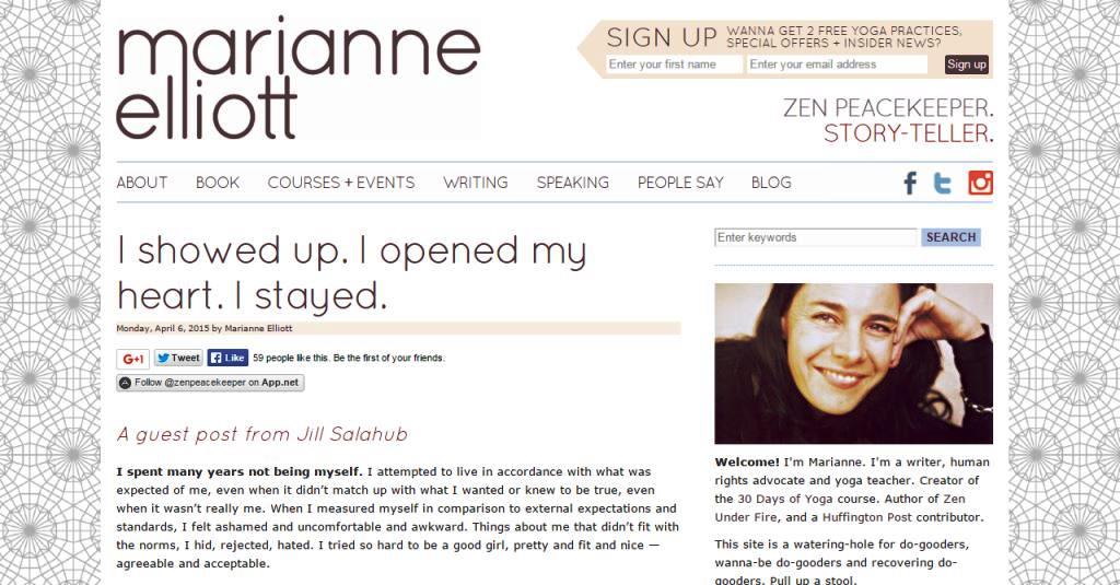 I showed up. I opened my heart. I stayed. a guest post I wrote for Marianne Elliott’s blog, April 2015.